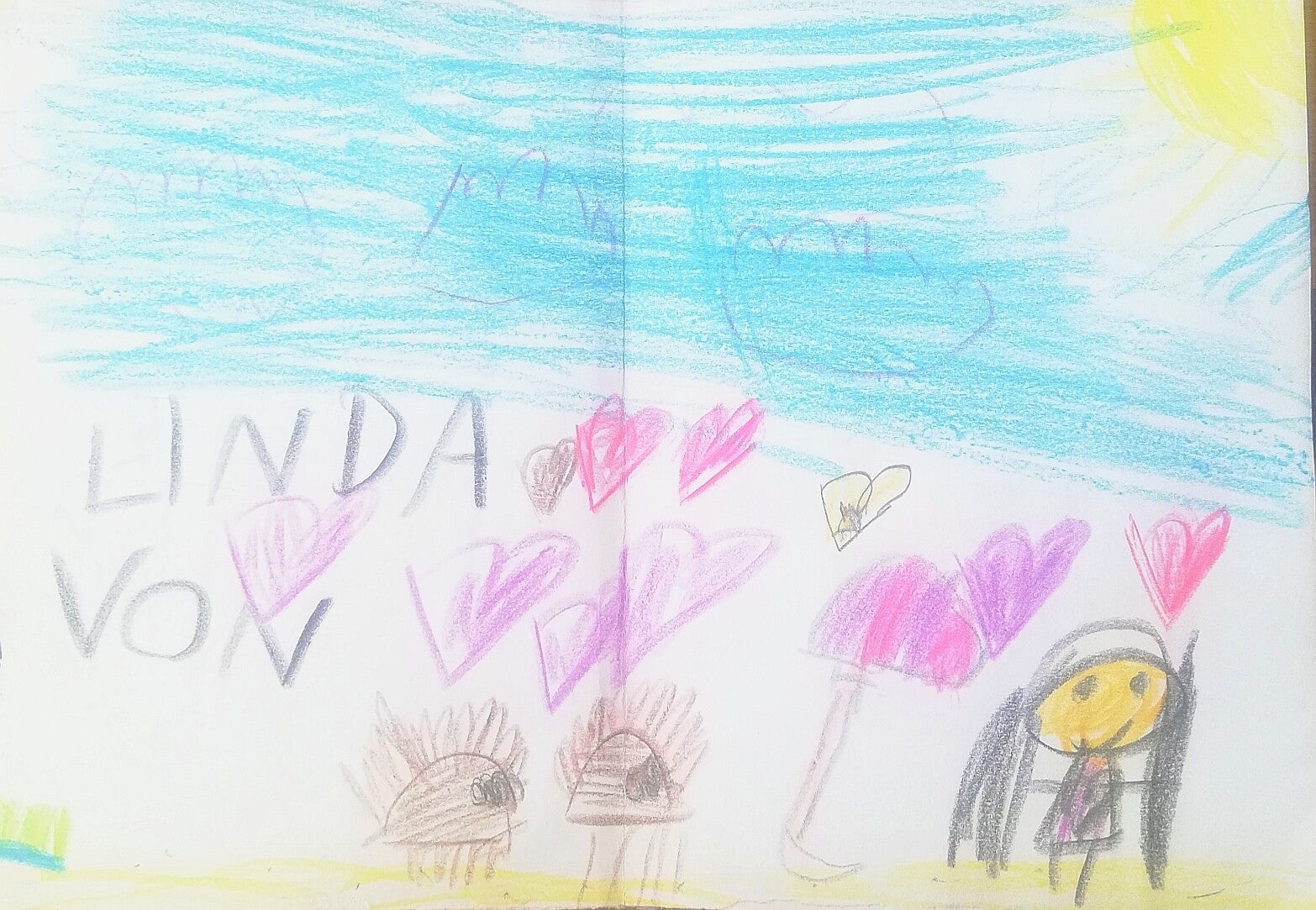 L: Die J. meint, dass die Augen der Wüstenigel aus Glöcken waren. Die Frau hat so einen Sturm gemacht, da ist der Sand so rumgesprungen.