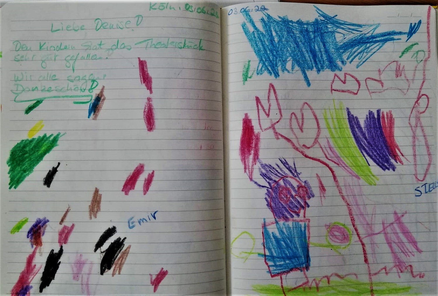 Die Kinder aus der Kita Ölstraße in Köln sagen ganz lieben Dank für die tolle Wüstenigel-Aufführung am heutigen Tag. April 2019
